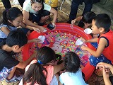 スーパーボールすくいに射的、宝探し、紙飛行機飛ばし大会でゲームが盛り上がりました。