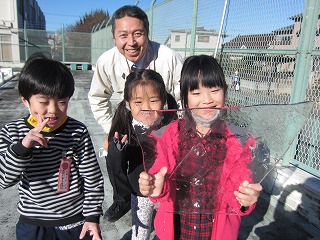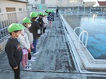 ひえこんだあさだったので、「プールにこおりがはっているかな」と見てみました。すると、プールのぜんたいにこおりがはっていました。きょうとう先生が、こおりをわってとり出してくださいました。つかむとつめたい!ふゆをかんじましたね☆