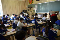今日も水曜日なので、週に一度のチャレンジタイムです。今日は、算数の2回目。各学年で共通の内容に取り組みました。