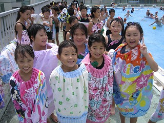 水をかぶったり、プールに入ったりしたとたん、子供たちの歓声が上がります絵文字:笑顔