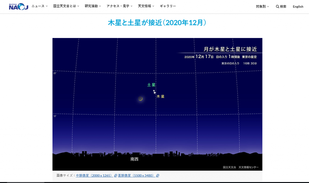 木星と土星が接近(202012月) | 国立天文台(NAOJ)←クリック