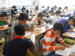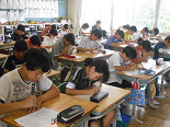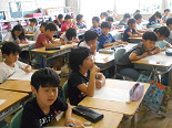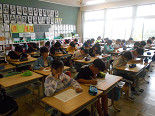 今日は、週に一度のチャレンジタイムでした。今週・来週は、国語です。3年生以上は、一斉にプリントに真剣に取り組んでいました。1年生は、ひらがなの学習、2年生は、漢字の学習をしていました。1・2年生は、今は、基礎的なことを学習していますが、これから少しずつ「考える」学習を取り入れていきたいと思います。