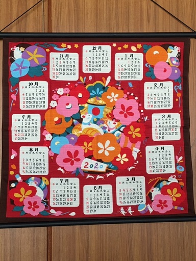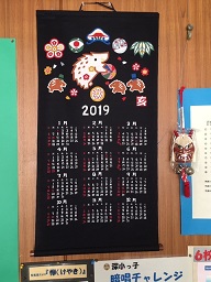 校長室に十二支のうち、その年のものを飾っています。昨年は亥年でしたのでイノシシの布カレンダーでした。今年は子年なので、ネズミの布カレンダーにしました。