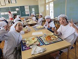 地味だけど、おいしい絵文字:笑顔と、1年生もおかわりして食べて