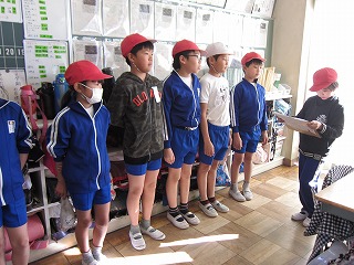 心を込めてそうじをした後は、反省会もしっかり行います。自分たちの仕事を確かめて、次のそうじに生かします。落ち着いた態度で、5時間目の授業に臨みましょう。