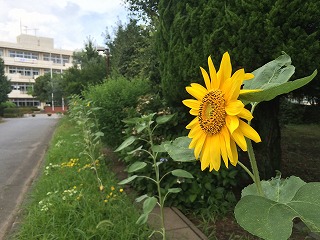 正門をくぐり、校舎までまっすぐの道を「深小アベニュー」と言います。深谷小を訪れた人たちを、もうすぐ深小アベニューでたくさんのひまわり達が出迎えられるようになりそうです。