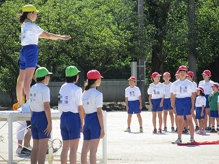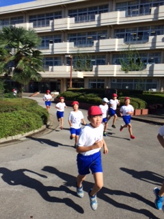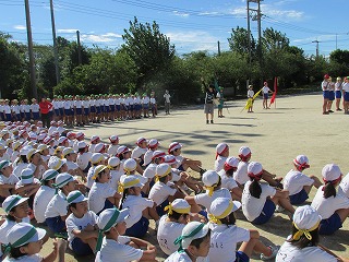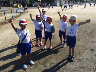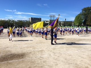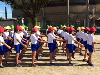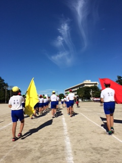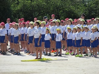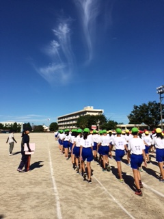 青空の下、運動会の全体練習をがんばりました。