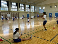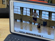 体育館では、6年生が縄跳び大会を行っていました。今年は、感染症予防対策ということで、クラスごとに記録をとります。その際、タブレットを使って自分の跳ぶ様子を撮影し、また、何回跳んだかを記録に残していました。