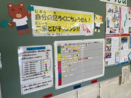 体育の掲示コーナーには、「二重跳びチャレンジ」があります。跳べる回数によってシールの色が違います。どんどん上のシールが貼れるように頑張ってほしいと思います。クラスごとに二重跳びができる子の人数がわかります。縄跳びは、とにかく練習。毎日頑張って練習を続けられれば、必ず記録が伸びるはず。ファイト!