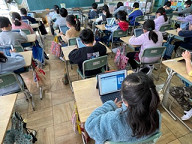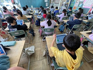2年生は、タブレットで練習問題を行い、一人一人に合わせて算数テストの準備をしていました。早い子は、どんどん次に進めます。時間のかかる子も、自分のペースで行うことができます。そして、タブレットが正答か誤答かを教えてくれます。自分で答え合わせをする必要がありません。とっても便利です。