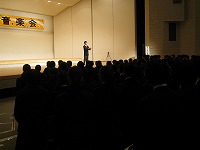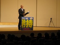 文化会館大ホールいっぱいの観衆  開会式での校長先生の「矜持をもち、心一つに感動の歌声を響かせよう」というお話