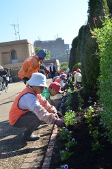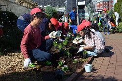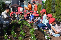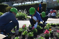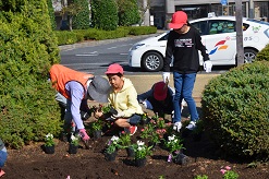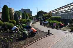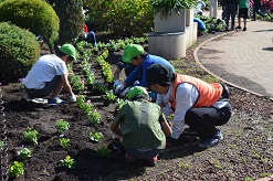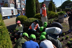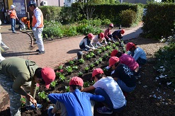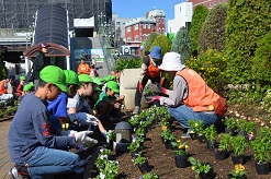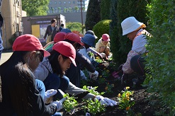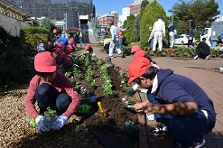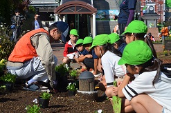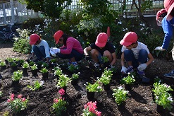 4年2組が城址公園に花を植えてくれたのと同様に、今度は、4年1組と3組が、渋沢栄一翁が見守る深谷駅下のステーションガーデンにパンジーやなでしこ等の花とチューリップの球根を植えました。「ふかや緑の王国」の皆様、ボランティアの皆様のご厚意により、子供たちに花の植え方を教えていただきながら、子供たちは、たくさんの体験をすることができました。