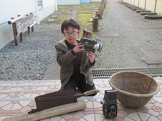 3年生の社会科の学習で、昔のくらしを学習しています。先日、ホームページで呼びかけたところ、今日さっそく2年生の児童が昔の道具をたくさん持ってきてくれました☆ 昔のカメラや、牛の食べるワラを切る道具などを貸してもらいました。