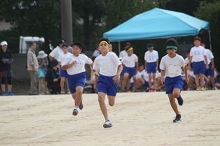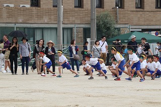 1年生は60m、2・3年生は80m、4・5・6年生は100mの徒競走。