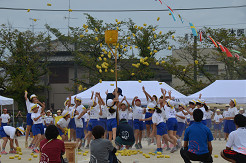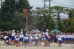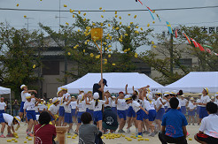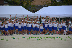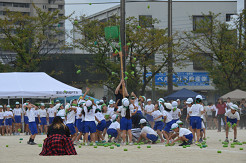 22  全学年「色別対抗縦割り玉入れ」