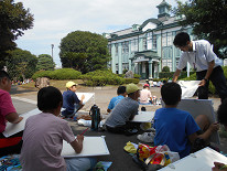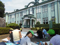 17号国道から見える伝統の『二層楼』を中心に描いている子が多かったようです。どんな絵が仕上がるのか楽しみです。