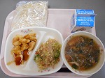今日の給食は、広東麺・牛乳・みそポテト・中華サラダです。