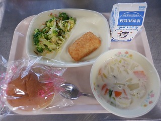 サラダ ふっきゃろレモンドレッシング・牛乳です。