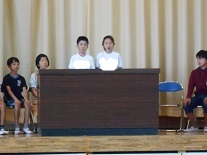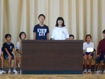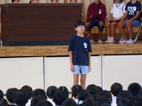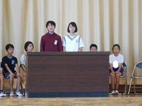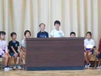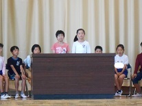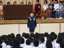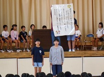 これまで、たくさんの行事等で大活躍の前期代表委員の子供たちに、みんなで拍手を送り、お世話になりましたという感謝の気持ちを表しました。前期代表委員の皆さん、ありがとうございました。お疲れさまでした。