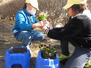 の苗を植えました絵文字:二人-花いっぱいの「美しい学校」に☆-