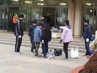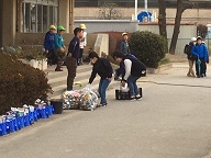 寒い中、子供たちが家庭で集めてくださったアルミ缶を持ってきてくれました。