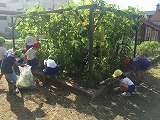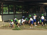 学年ごとに協力して、朝から汗を流しながら取り組み、