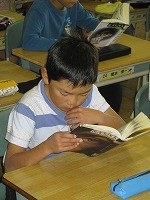 「読む子は考える」という言葉を校長室に掲げています。今朝の朝読書では、読み聞かせに耳をかたむける子、