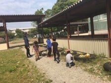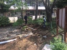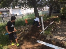 預かりで学校に来ている子供たちが、ビオトープづくりの手伝いをしてくれました。