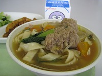2月13日は、郷土の偉人・渋沢栄一翁の誕生日です。そこで、深谷市内の小中学校の本日の給食には、栄一翁が好んで食べた煮ぼうとうが献立に入っています。