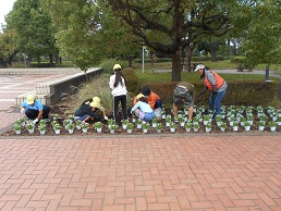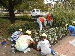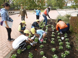 本日、2校時に4年2組の子供たちが城址公園に行き、深谷みどりの王国の方、ボランティアの方にいろいろ教えていただきながら、花を植えました。子供たちの頑張りで、城址公園のあちこちに花が咲き、よりきれいな公園となりました。