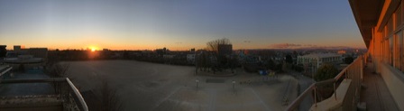 6時54分の日の出の時刻に合わせて学校に着き、校舎4階から初日の出を写真に収めました。