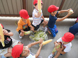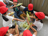 1年生が皮をむいてくれたトウモロコシは、本日の給食に登場します。楽しみです。