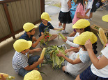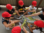 本日1校時に1年生がトウモロコシの皮むきを行いました。