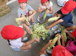 トウモロコシの皮むき