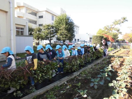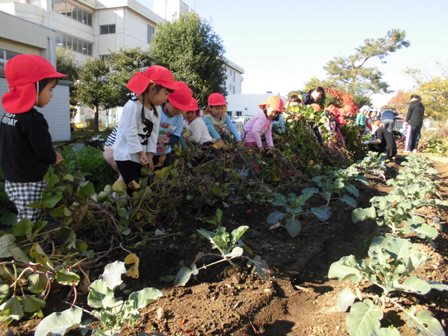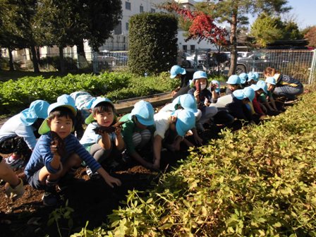 深谷幼稚園の園舎の裏には、畑の先生に教えていただきながら子供たちが季節ごとに作物を育てている小さな農園があります。