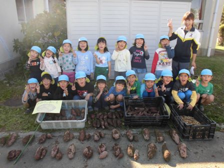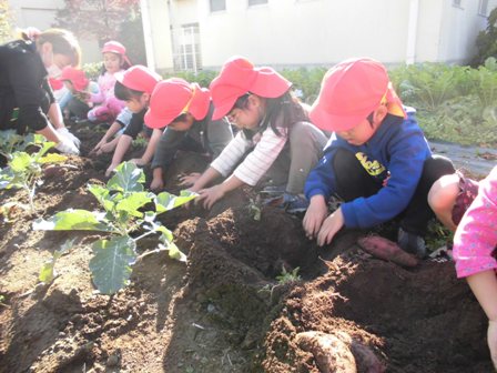 夏の間はお日様の光をしっかり浴びて、土の中でサツマイモが大きく育ったようです。今日は、土の中からサツマイモを掘り出します。どのくらい大きくなっているでしょうか?ワクワク・ドキドキしながらのサツマイモ掘りの始まりです絵文字:笑顔
