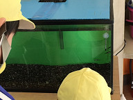鮭の動きがどんどん活発になってきています。おなかの栄養の袋がとれ、自由に動けるようになってきました。今度は、自分で餌を食べなければなりません。餌を食べる様子も子供たちは見られるようになります。