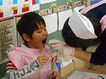 本校で毎年行ってくださり、様々な準備をして大勢の方が来てくださるので、本校にとって大変ありがたく思っています。今日も、3年生の子供たちが自分のの歯磨きの仕方を振り返ったり、5年生の子供たちがRDテストを行い、唾液中の虫歯菌の数を調べたりしました。