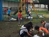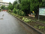 今日は、雨の中でしたが、大勢の深小っ子や保護者、地域の皆様とともに除草作業や剪定作業をすることができました。お天気の具合を見ながら約1時間の作業でしたが、夏の日差しのもとでうっそうとしていた雑草も植木の枝も、すっきりとしました。
