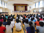 国語主任から、音読の大切さを子供たちに話した後、各学年の国語教科書に掲載されている『広がる言葉』を1年生から6年生まで音読しました。どの学年も、学年に応じてすばらしい音読となりました。