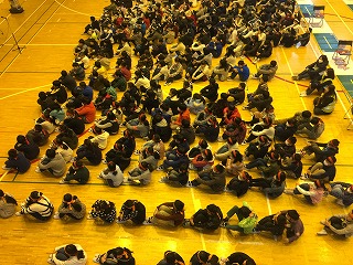 開会式が始まる前の体育館に一番のりで気合い十分です!立派な態度で開会式に参加し、いよいよ競技開始です。
