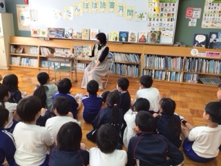 2、3、4時間目にそれぞれのクラスで学級当番の保護者の皆様、読み聞かせボランティアの皆様に絵本の読み聞かせをしていただきました。