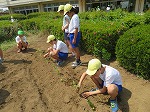 産業祭に向けて、6年生でさつまいもの苗植えをしました。