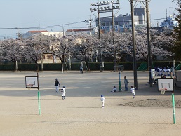 校庭では、スポーツ少年団野球の子供たちが一生懸命練習していました。