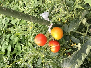 トマトがやっと赤く色づいてきました。 2学期に2年生がトマトソースにします絵文字:笑顔