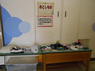 今回の授業参観でも、これまでの落とし物を西昇降口に展示します。