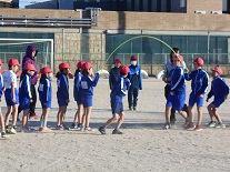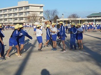 1年生も、上手に長縄の中に入れるようになってきました。タイミングが合えば、みんな跳べます。6年生は、特別長い縄跳びで、クラス全員が一度に入って大縄を回しています。