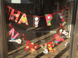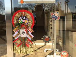 学校の玄関は、下のようになっています。28日に飾り付けをしました。