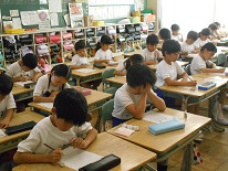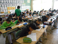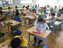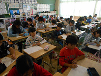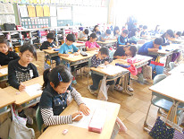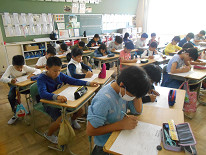 「考える力」 「表現する力」等を育てることを目的に行っている『チャレンジタイム』。本日の朝は、算数でした。それぞれの学年で作成したプリントを行っていました。子供たちは、それぞれ一生懸命に問題に立ち向かっていました。