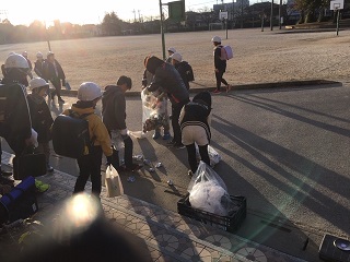 今朝も、子供たちがアルミ缶を持って登校してきました。ご家庭のご協力で、今日も冬なのにたくさんのアルミ缶が集まりました。